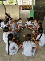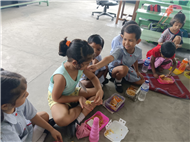 Description: The students of the Literacy Center celebrated Sharing Day on 5th July. The students shared their favourite tiffin with their classmates, which was enjoyed by all the students.